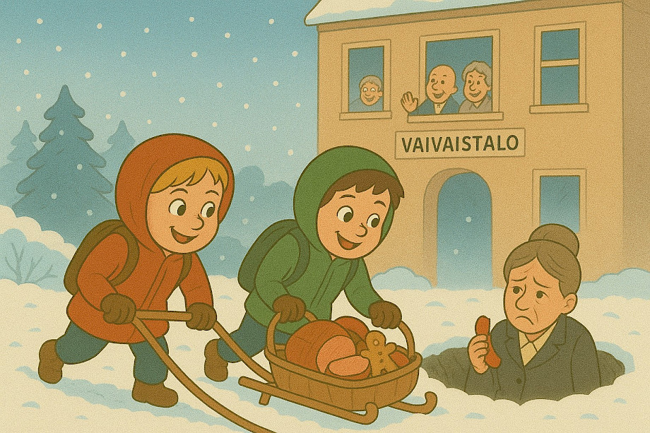Tarinassa Komentoora-rouva kahmii kaikki jouluherkut itselleen ja lähtee kotimatkalle tyytyväisenä siihen, että hänellä on kaikki ja muilla ei mitään. Tämä kuulostaa pelottavan tutulta: hyvinvointialueet lykkäävät rahojaan hallintoon, konsultteihin ja ikuisesti päivittyviin strategioihin, kun taas perusterveydenhuolto kituu kuin joulukinkku pakkasessa. Komentoora kuvautuu byrokratiana, joka vie kaiken eikä edes häpeä.