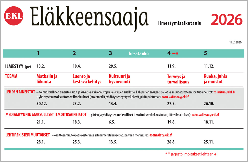 Tästä voit ladata/tulostaa alla näkyvän ilmestymisaikataulun (A4 pdf)